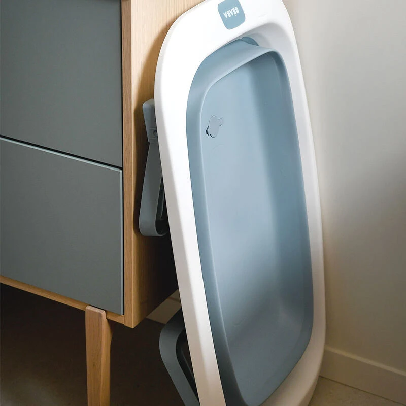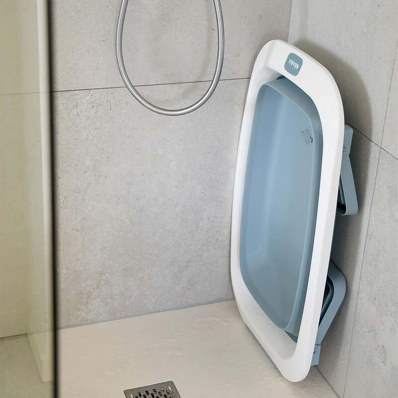 Après utilisation les pieds se replient et la baignoire peut être mise contre une paroi de douche / baignoire pour sécher.