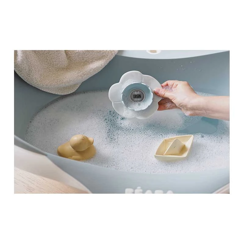 Le thermomètre de bain Lotus de la marque Béaba est un thermomètre numérique multi-fonctions.