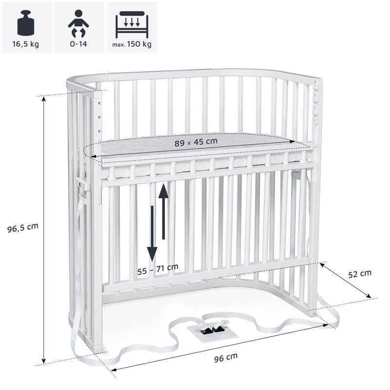 Le Boxspring Comfort est un lit ajustable en hauteur afin de s’adapter parfaitement à la literie des parents. Des sangles de fixation sont livrées avec le berceau pour vous permettre de bénéficier d’une installation sûre.
