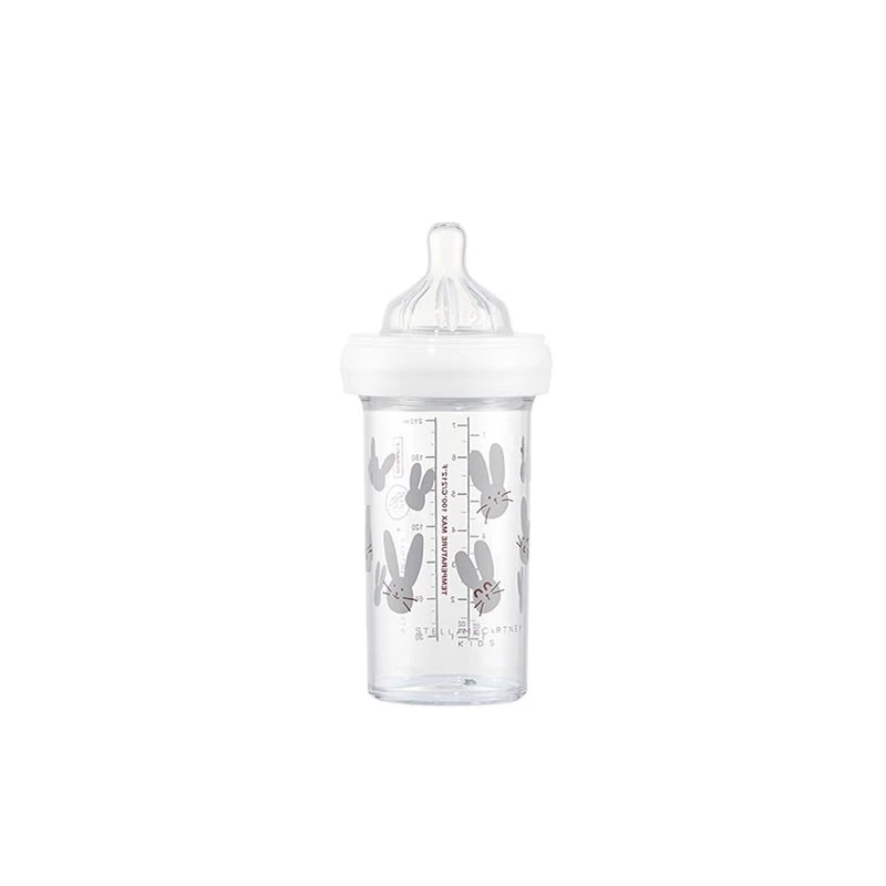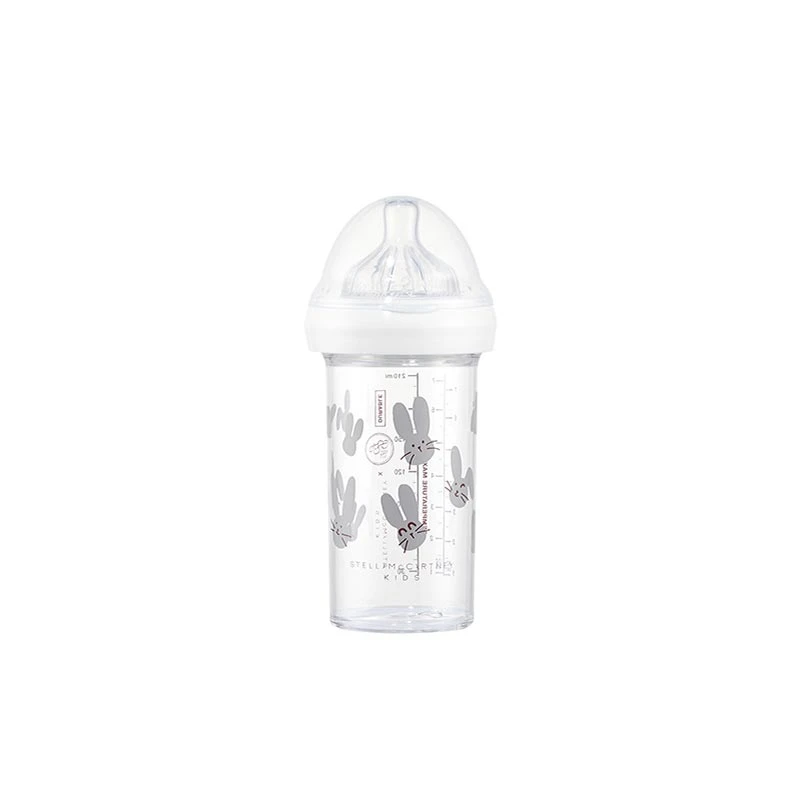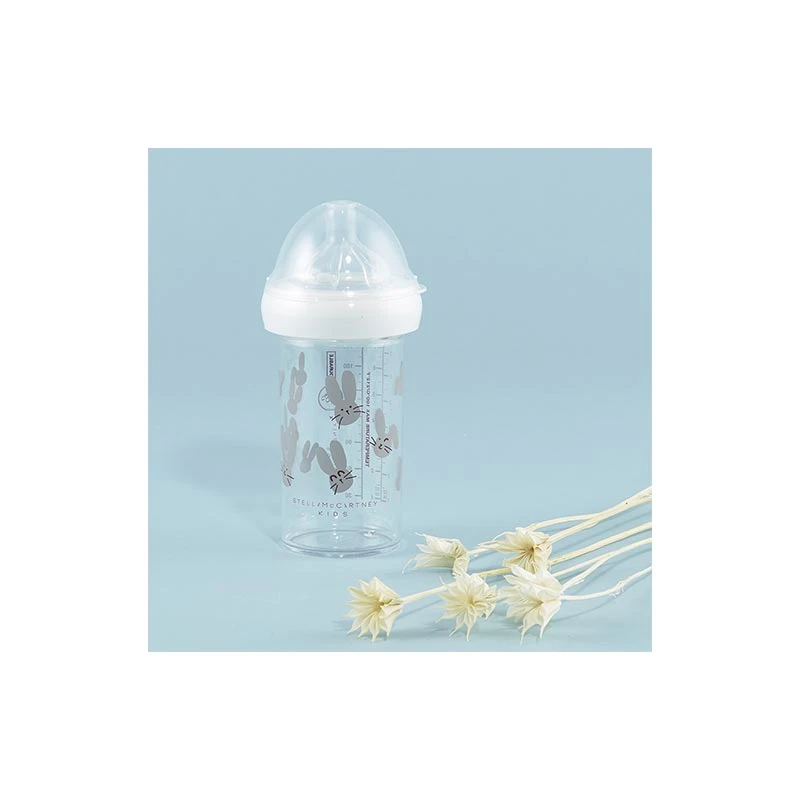 - Le biberon est décoré d’un joli motif de lapins designé par Stella Mc Cartney.