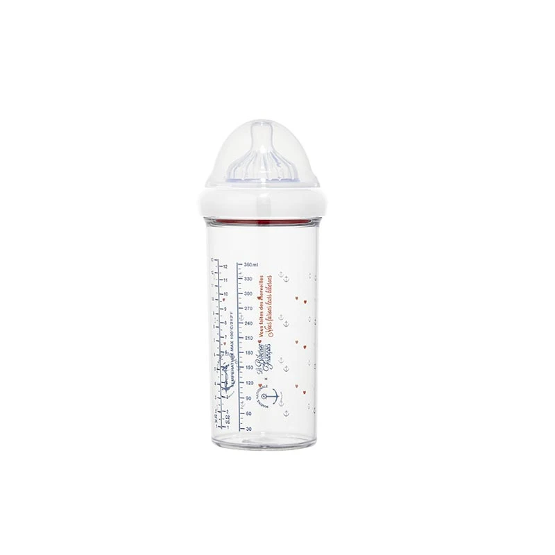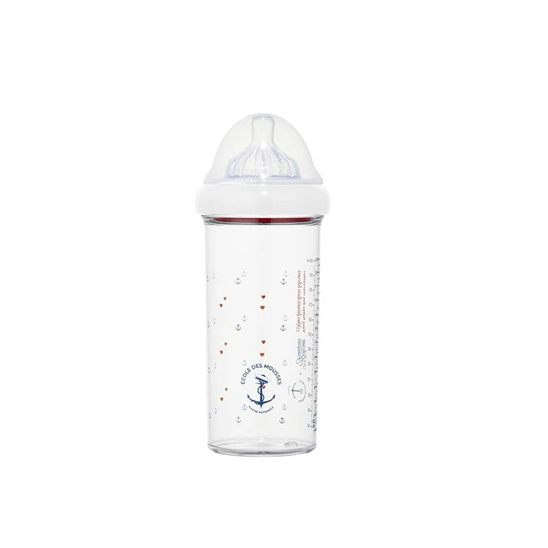 - Le biberon 360 ml 6m+ Marine Nationale est doté d’un joli décor d’ancres et de coeurs.