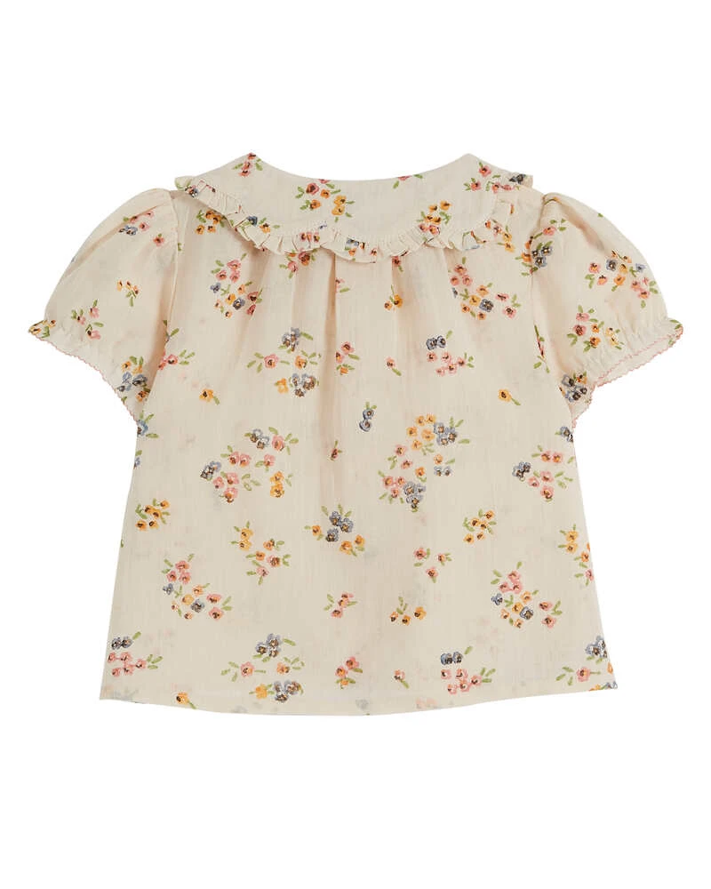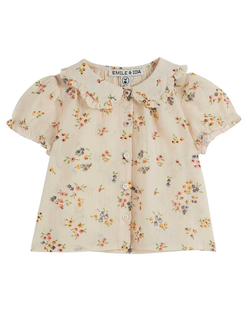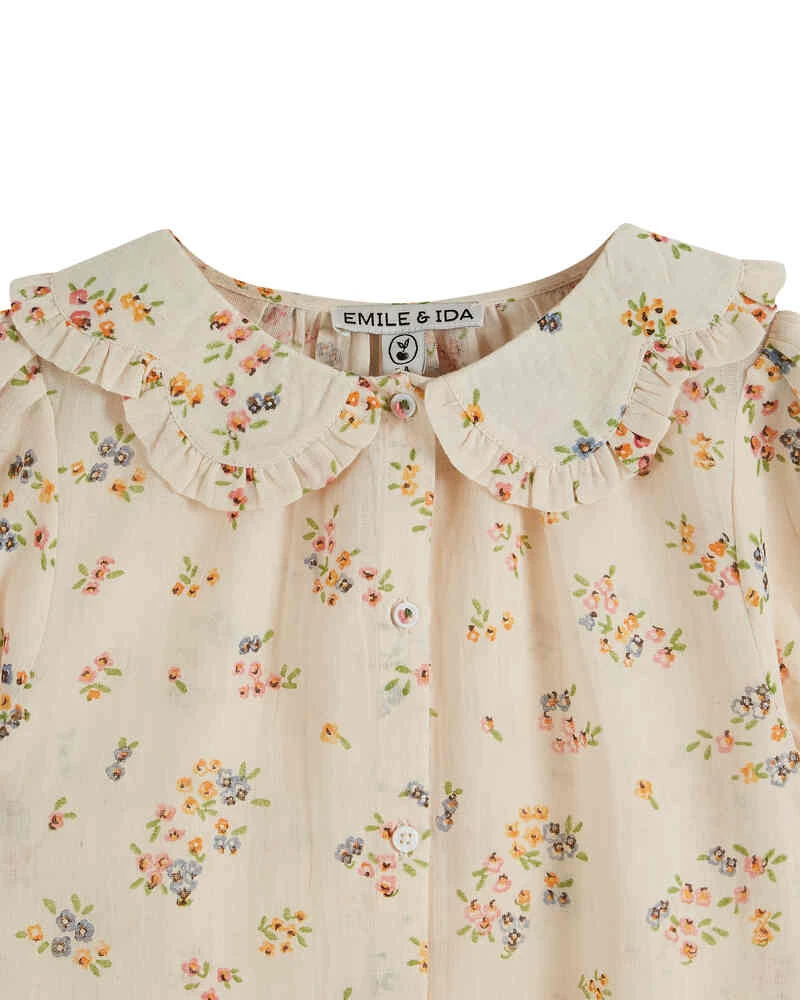 La charmante blouse en gaze de coton beige, parsemée de jolies fleurettes multicolores, une création signée Emile & Ida.