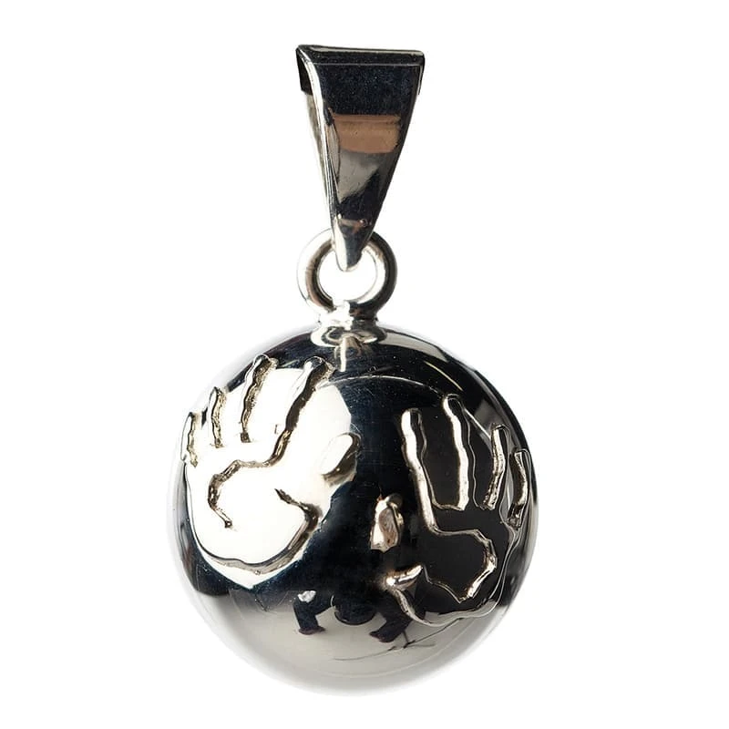 - Le bola argent mains est un pendentif rond et argenté qui contient un xylophone au léger son relaxant pour bébé et sa maman.
