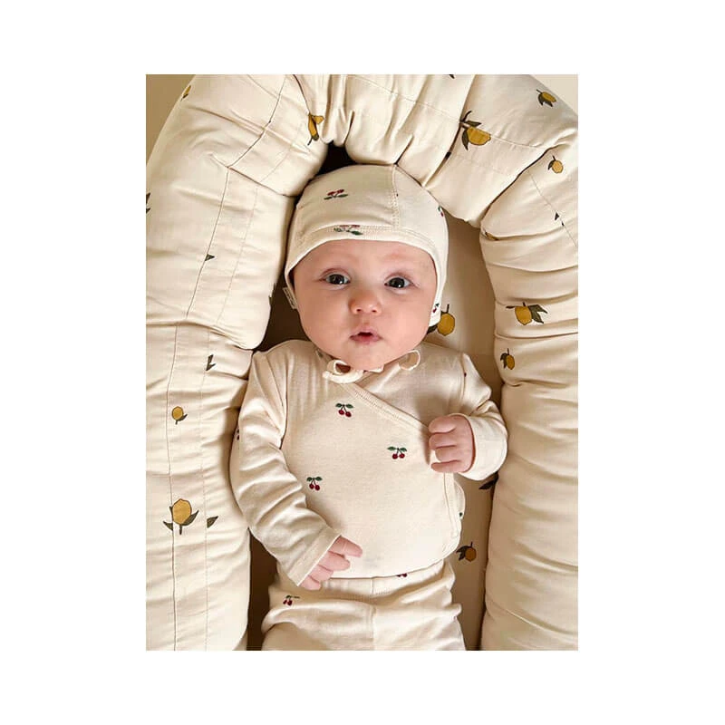 Ce bonnet pour bébé est un adorable et confortable casque souple, spécialement conçu pour les tout-petits. Fabriqué à 100 % en coton biologique de la plus haute qualité, ce bonnet est non seulement doux et délicat pour la peau sensible de bébé, mais il est aussi respectueux de l’environnement. Sa forme ronde est parfaitement adaptée à la morphologie des bébés, dès la naissance et même pour les prématurés, offrant un ajustement parfait et confortable. De plus, ce casque est doté de deux liens droits qui se nouent sous le menton, assurant ainsi un maintien sûr et sécurisé.