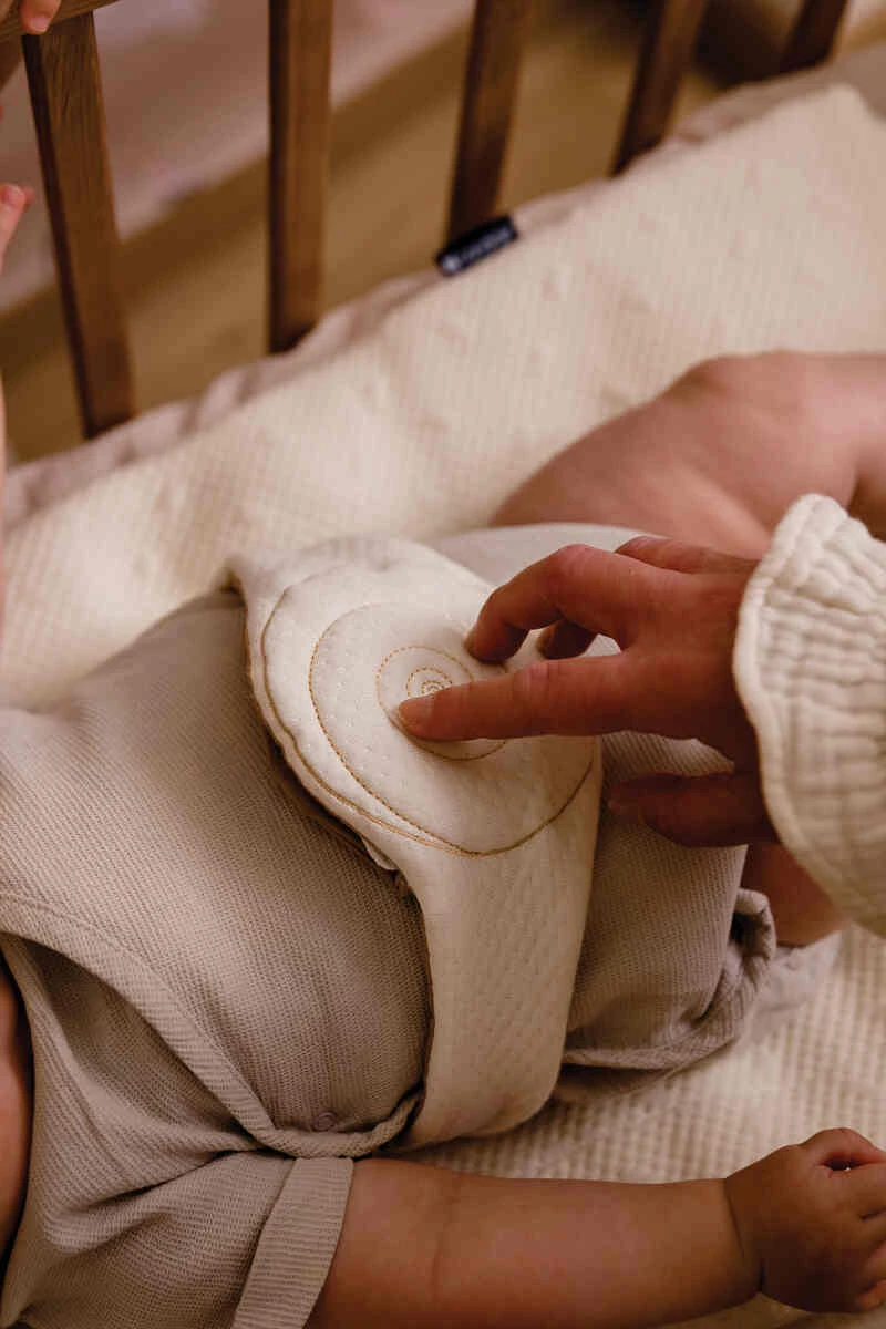 Sa forme de ceinture permet à la bouillotte de rester bien en place sur le ventre de votre bébé, offrant ainsi un soulagement ciblé et continu. Le design pédagogique de la bouillotte inclut une broderie en spirale qui indique le sens du massage, facilitant ainsi l’application des gestes apaisants.