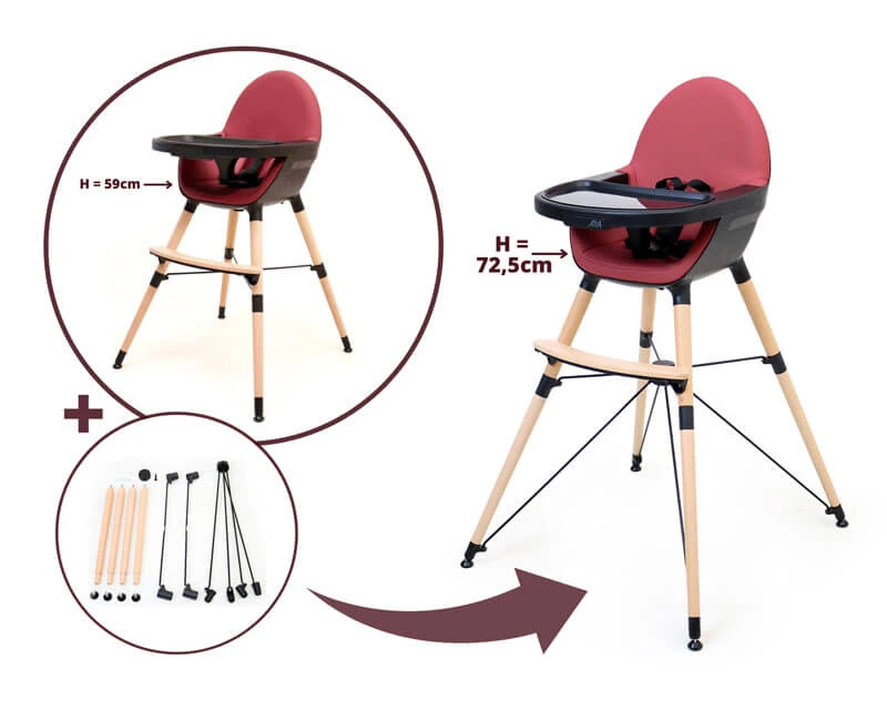 - Le rehausse chaise haute Confort noir et bordeaux est uniquement compatible avec la chaise haute AT4 noir et bordeaux.