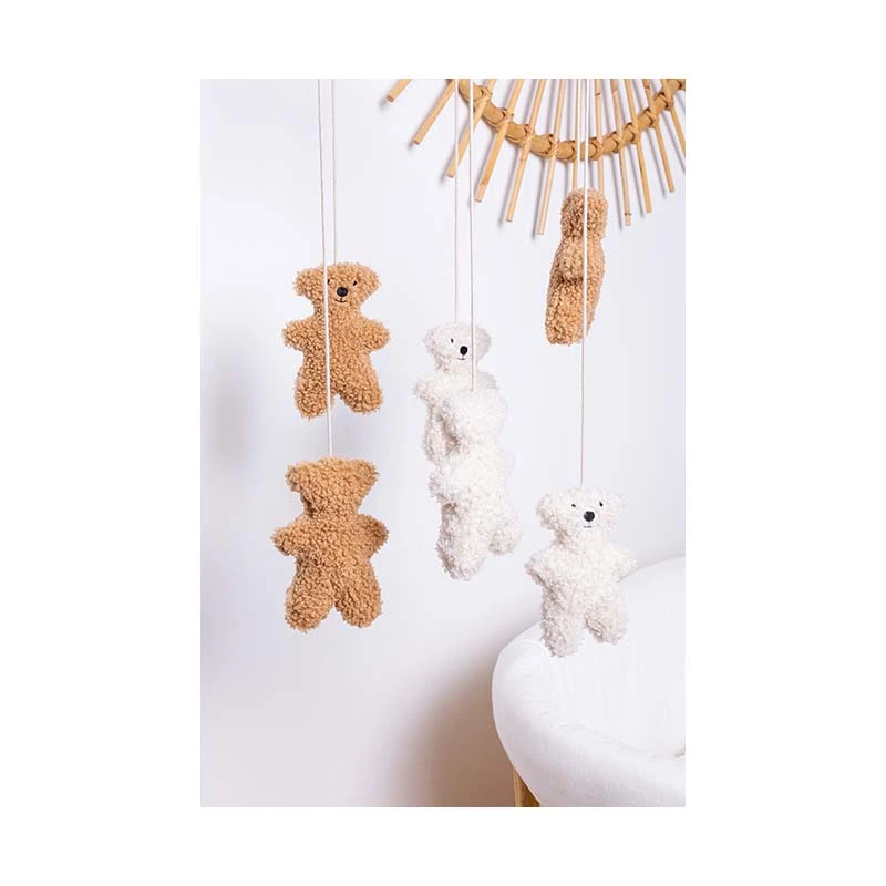 Le mobile petits oursons Teddy est réalisé en polyester et se nettoie avec un chiffon et un détergent doux.