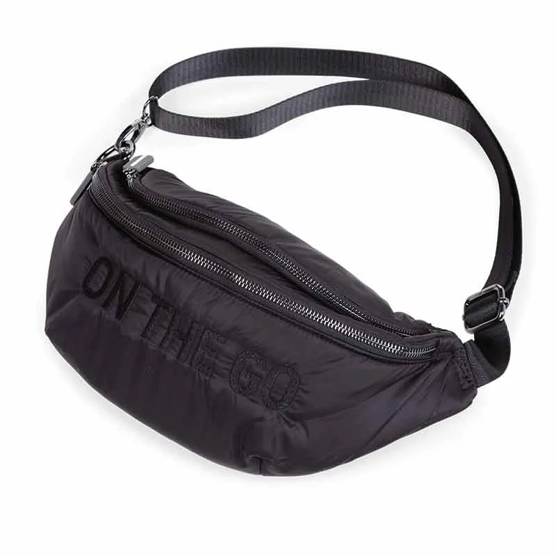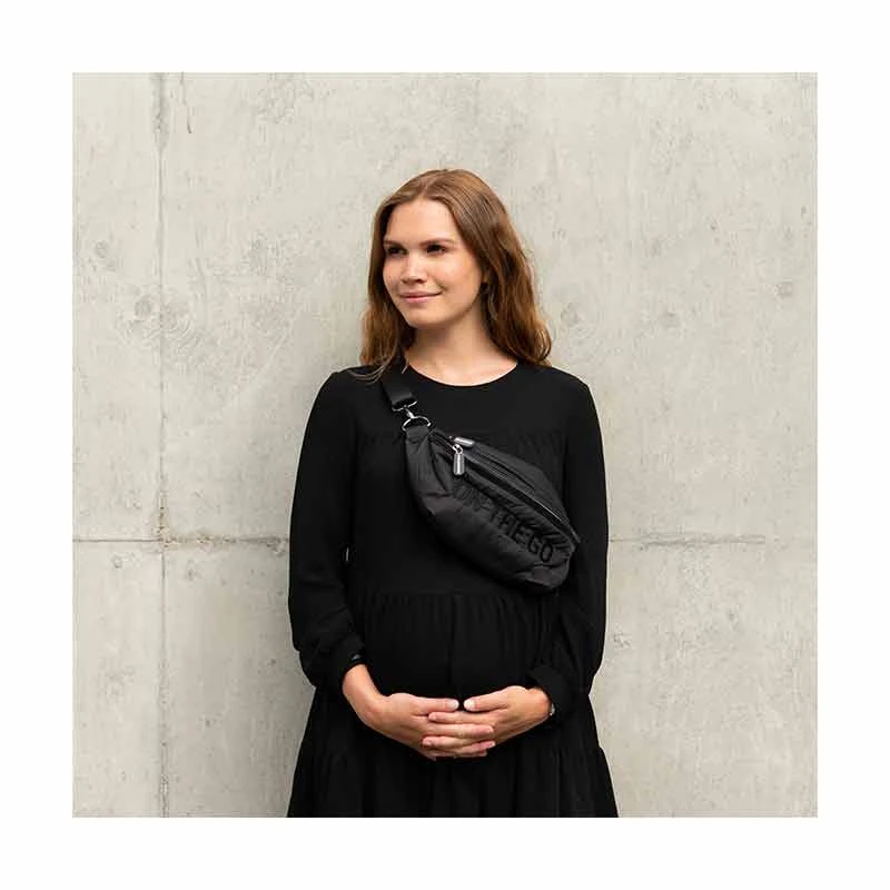 Le sac banane On the go matelassé Noir de la marque Childhome est un sac tendance pour les jeunes parents occupés.