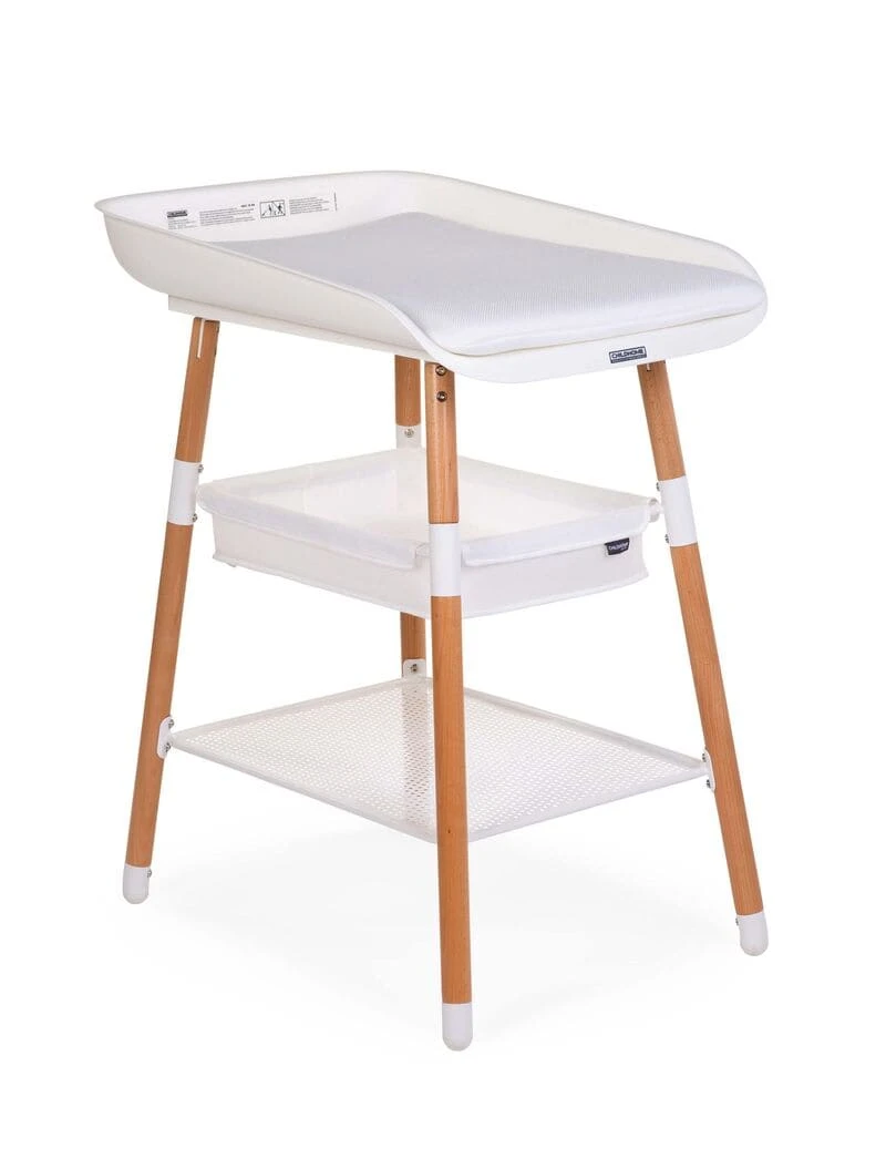 La table à langer Evolux Naturel/Blanc de Childhome est conçue pour le change des enfants dès la naissance et jusqu’à 15 kg.
