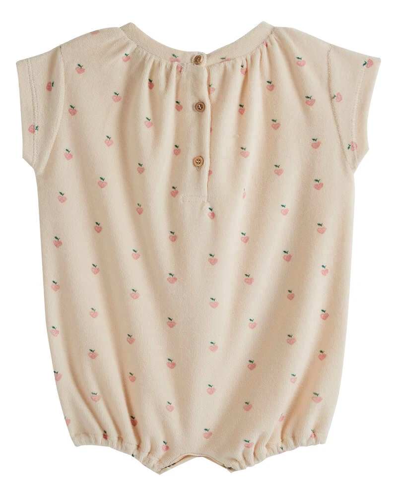 L’encolure ras du cou en éponge, les manches courtes et le tour des cuisses élastiqués donnent à cette barboteuse une touche printanière irrésistible, parfaite pour les premiers beaux jours. Les trois pressions à l’entrejambe rendent le change un jeu d’enfant, tandis que les boutons en bois dans le dos facilitent le passage de tête.