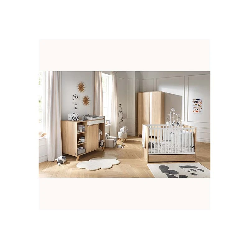 Parfaitement pensée pour soulager le quotidien des parents, cette commode polyvalente prévoit un plan à langer amovible pour une utilisation plus durable, ainsi que de nombreux rangements.