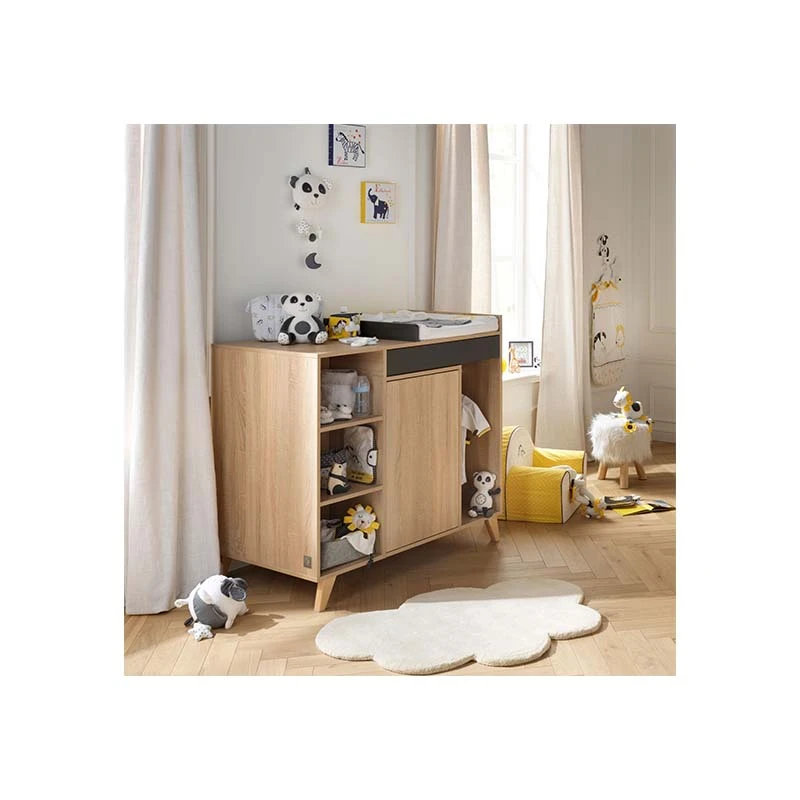 Évolutive, la commode est également équipée d’un plan à langer qui peut se retirer lorsque bébé grandit afin de la convertir en bureau.
