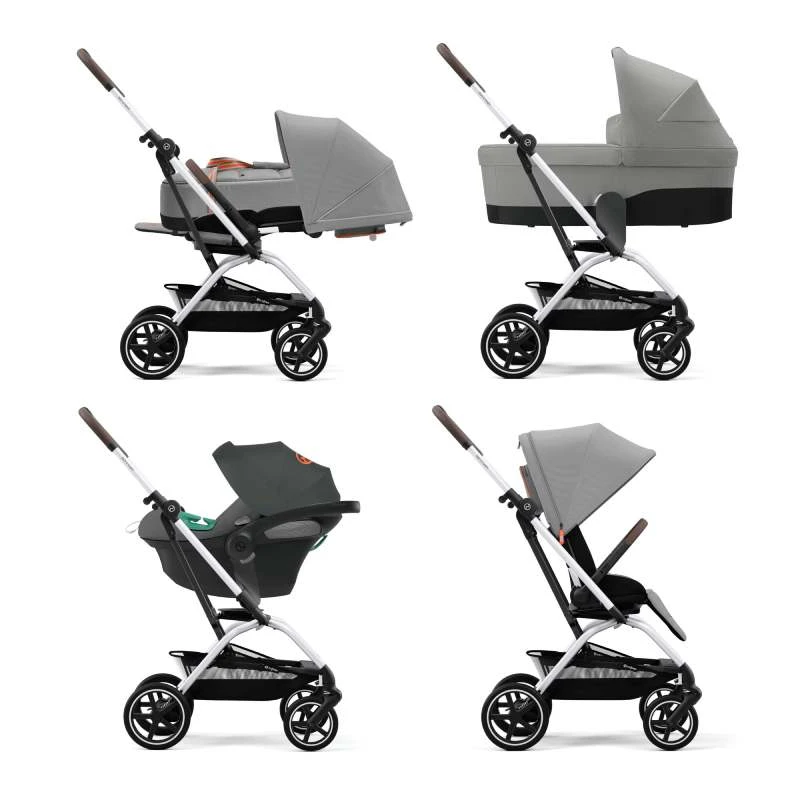 Equipée du Travel System 4-en-1 de Cybex, cette poussette permet également de clipser un siège-auto Cybex et GB grâce à des adaptateurs (vendus séparément).