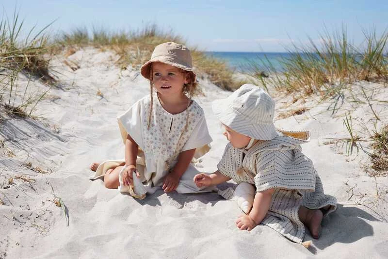 - Le Poncho de Bain – Pinstripe d’Elodie est idéal pour sécher votre enfant rapidement.