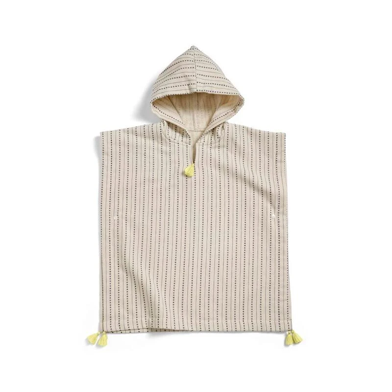 Le Poncho de Bain – Pinstripe d’Elodie est l’accessoire idéal pour sécher votre enfant rapidement grâce à sa doublure intérieure en coton éponge de haute qualité, super absorbante.