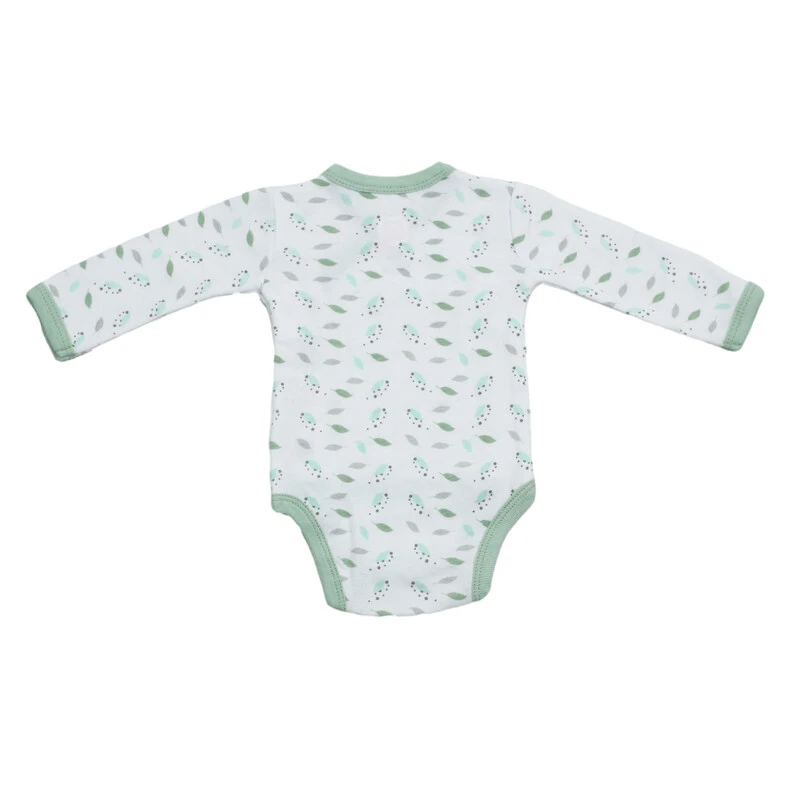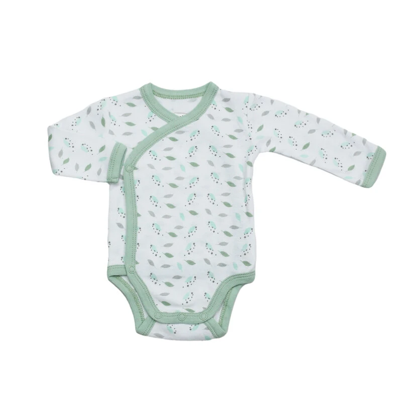 Présenté dans une élégante teinte pastel eucalyptus décorée de petites feuilles vertes, ce design rend votre enfant encore plus mignon. Disponible en deux tailles, dès la naissance suivant la taille de votre bout’chou. Un baluchon est inclus pour ranger et transporter facilement cet ensemble.