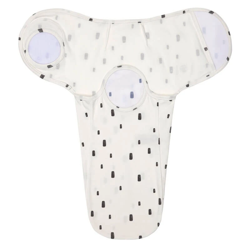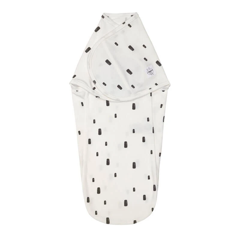 La couverture d’emmaillotage enveloppe bébé en douceur et empêche les mouvements des bras qui souvent le réveillent.