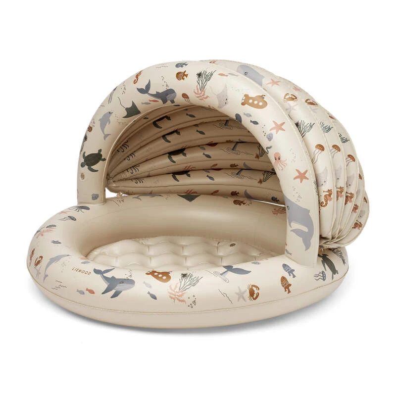 La Petite piscine avec capote imprimée Hadley de Liewood est une piscine avec auvent parfaite pour bébé poour le protéger du soleil pendant un moment d’amusement.