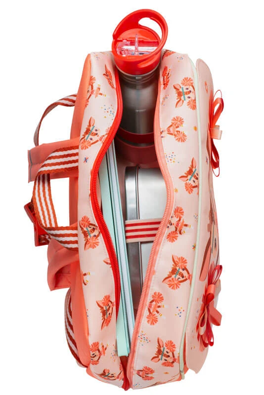 Ce cartable à l’effigie de Wonder Stella est doté d’un grand compartiment de rangement zippé pouvant accueillir des cahiers au format A4, une gourde ou encore un doudou. Il y a également une poche de rangement pouvant contenir un carnet de liaison ou un goûter.