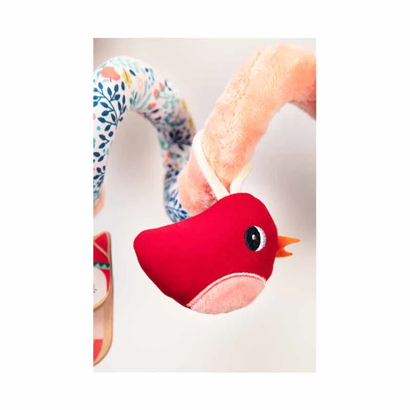 Pratique, la spirale est nomade et se fixe à de nombreux supports comme une arche de jeu, un siège-auto ou un parc.