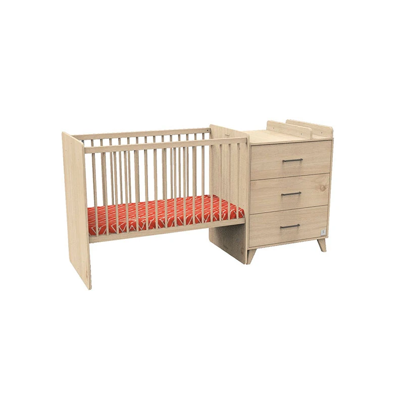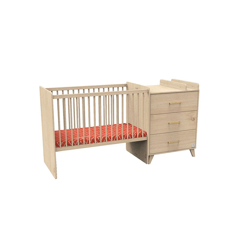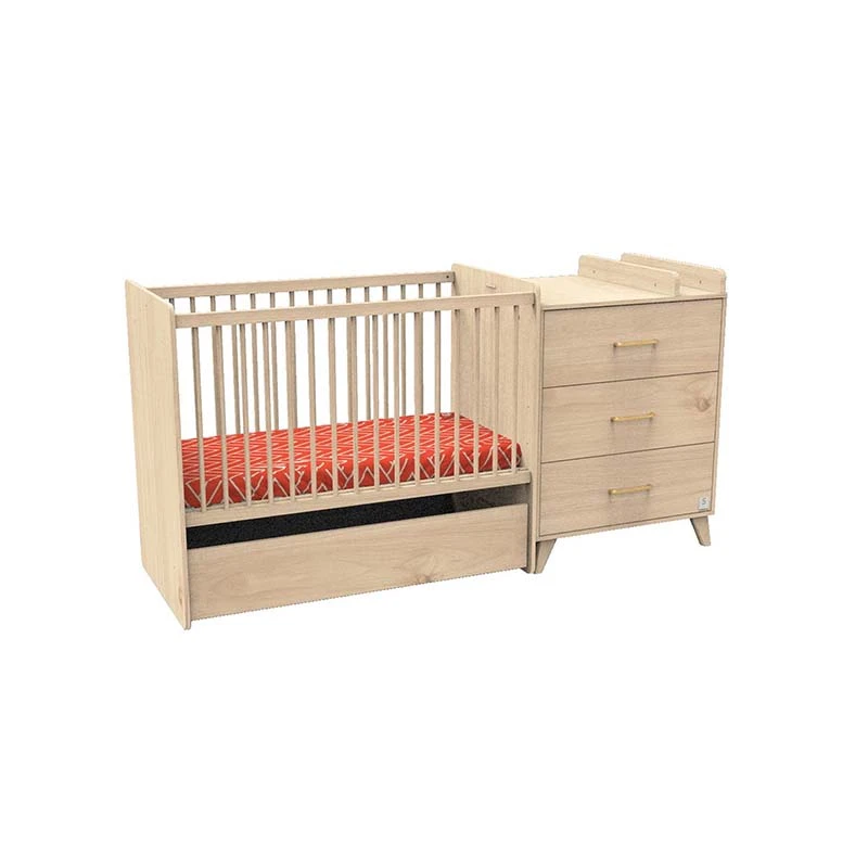 Ultra pratique, ce meuble combiné est composé d’un lit à barreaux et d’une commode à langer ouvrant à 3 tiroirs.