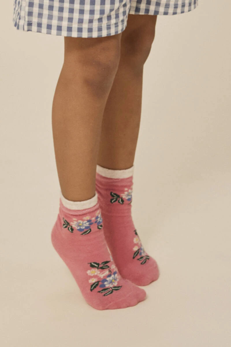 Le Lot de 2 paires de chaussettes Jacquard Pointelle de Konges Slojd comprend une paire de couleur rose avec un charmant motif floral, et une paire de couleur blanche pour une variété de choix.