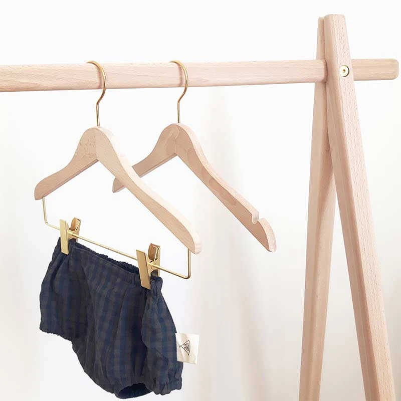 Imaginé par Mum & Dad Factory pour Charlie Crane, le cintre est réalisé en bois de hêtre massif et métal doré, et permet à votre enfant de suspendre tous ses jolis vêtements.