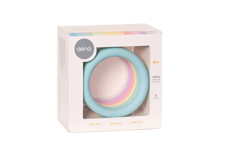 Quelles sont les caractéristiques techniques du lot de 6 anneaux d’éveil et de dentition de Dëna ?