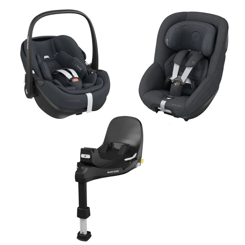 Le pack Pebble 360 Pro + Pearl 360 Pro + base FamilyFix 360 Pro de la marque Maxi-Cosi est un trio de produits qui conviennent au transport des enfants de 40 à 105 cm, soit de la naissance à 4 ans environ !