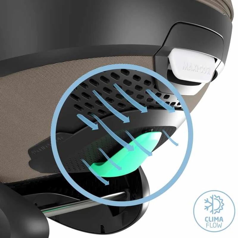 Trois positions d’inclinaison, un canopy UPF50+, et la technologie ClimaFlow garantissent confort et protection.