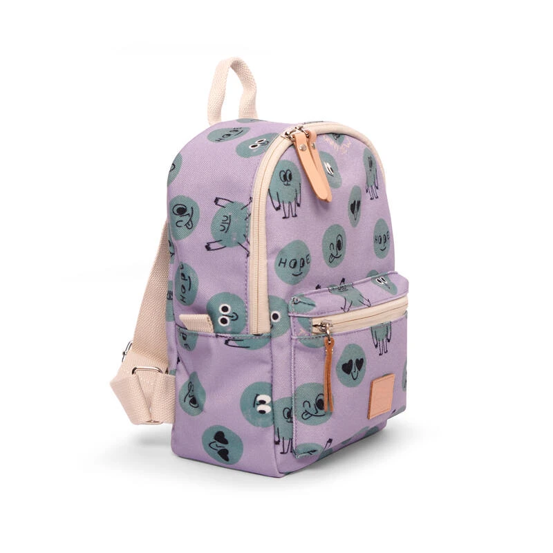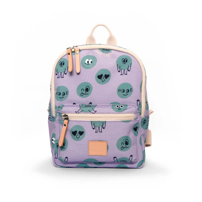 Le Mini Sac à Dos Funny Crew est l’accessoire parfait pour ajouter une touche de fun à vos journées. Avec ses couleurs violet et vert foncé, agrémentées de motifs de smiley, ce sac à dos se distingue par son design unique.