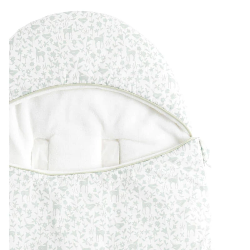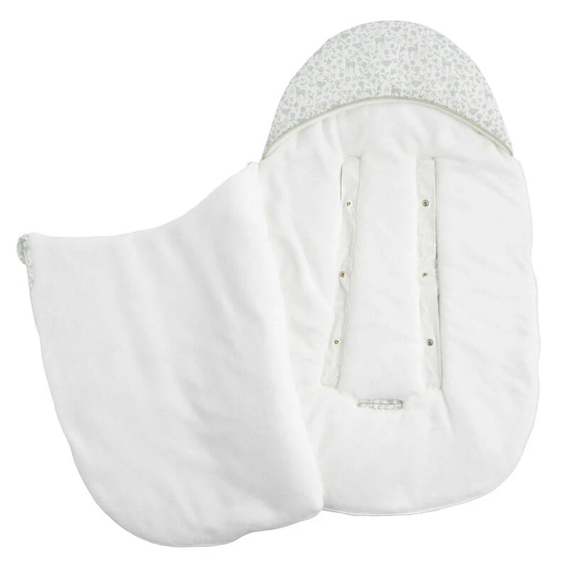 Pour accompagner bébé dès la sortie de la maternité, Sauthon a imaginé ce nid d’ange Promenons-nous avec ses couleurs fraîches et douces.