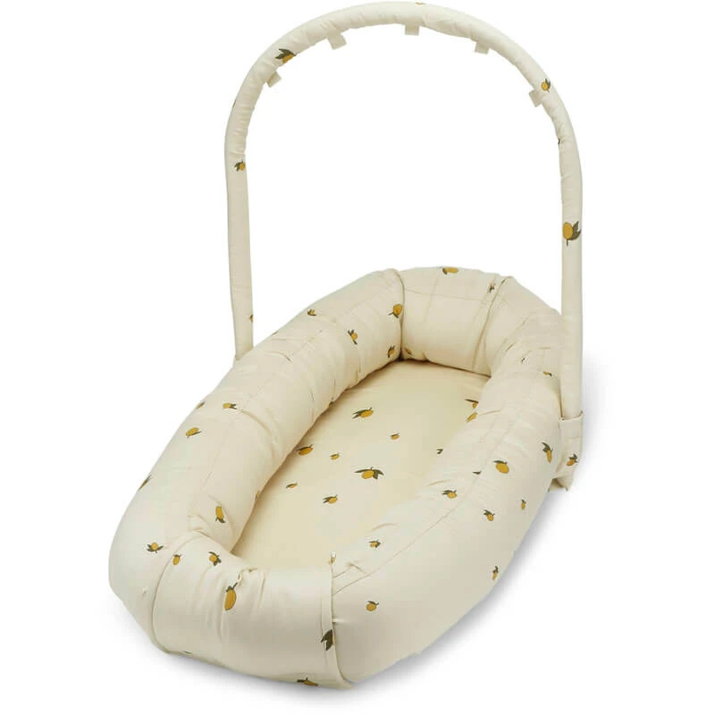 Notre confortable nid pour bébé est en coton bio et est idéal pour le berceau, à l’hôpital, dans la poussette, sur le lit ou pour la sécurité au sol. Il est livré avec une arche d’éveil détachable.