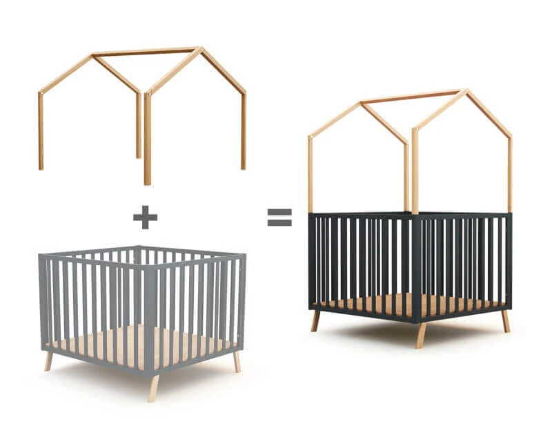 Le parc évolutif Confort 100×100 + toit cabane d’AT4 est pensé pour les bébés dès leur naissance, jusqu’à leurs 24 mois environ.