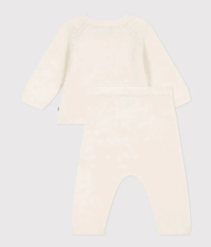 Quelles sont les caractéristiques de l’ensemble 2 pièces en tricot laine et coton Coeur de Petit Bateau ?