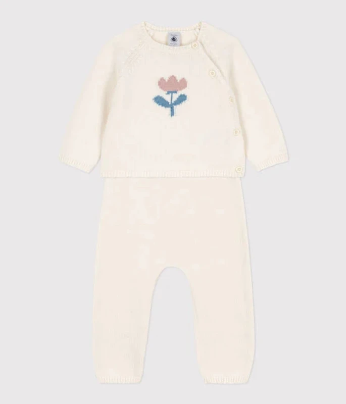 Quelles sont les caractéristiques de l’ensemble 2 pièces en tricot laine et coton Marshmallow de Petit Bateau ?
