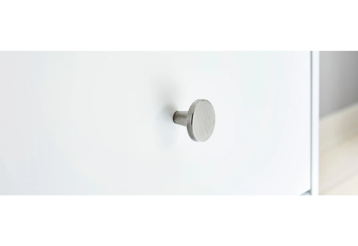 A l’intérieur, 3 étagères ajustables en hauteur et une tringle permettent de ranger toutes les affaires de bébé. Les portes et les tiroirs sont pourvus de poignées en acier inoxydable et d’une fermeture lente et automatique.
