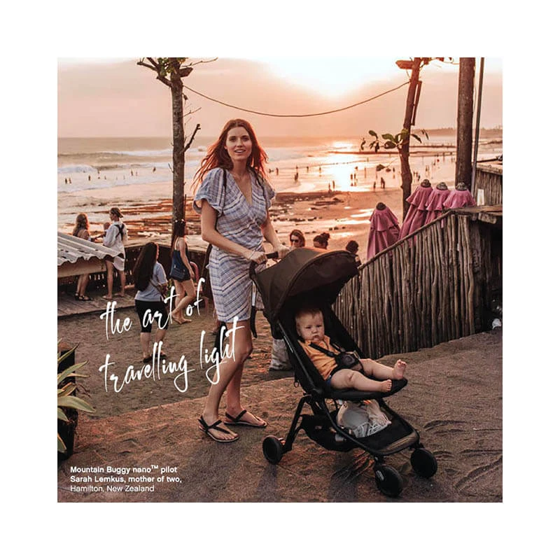 Pourvue du travel system, la poussette compacte Nano V3 est compatible avec de nombreux accessoires de la marque Mountain Buggy comme des coque auto pour se transformer en moyen de transport ultra complet !