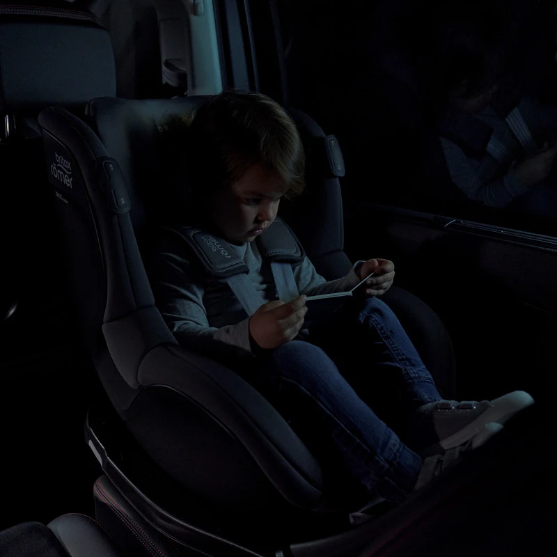- Il offre un système d’éclairage d’ambiance intérieure pour rassurer votre enfant lors de déplacements avec une faible luminosité. De plus, de dispositif vous permet de fixer correctement le harnais de sécurité du siège-auto quand il n’y a pas de lumière naturelle.