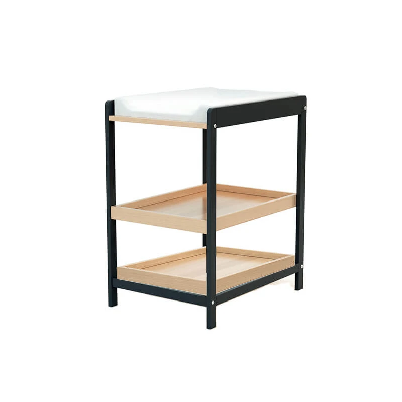 - Son plan à langer et son étagère sont composés de panneaux de fibres HDF mélaminés.