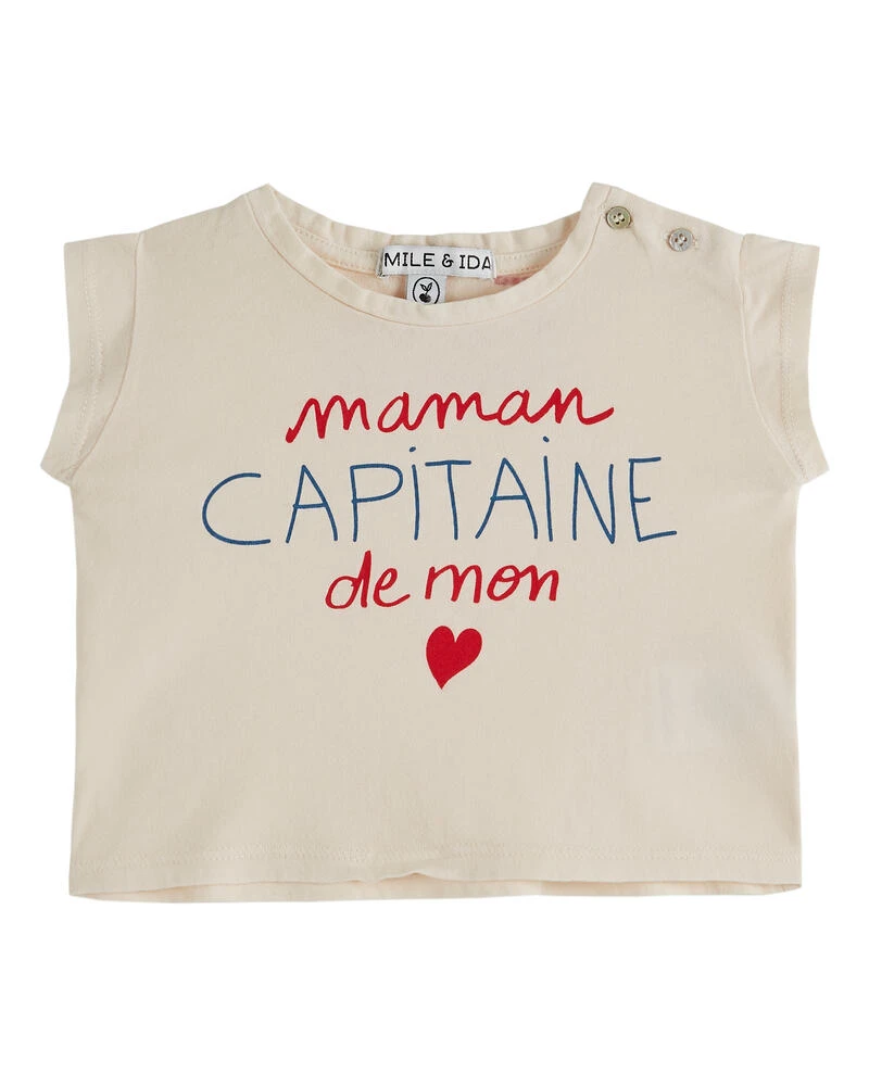 Quelles sont les caractéristiques du Tee-shirt “Maman Capitaine de mon Cœur” Crème de Emile & Ida ?