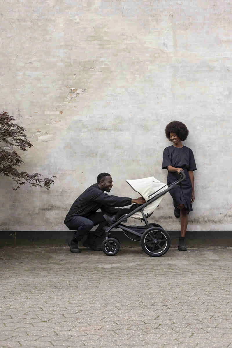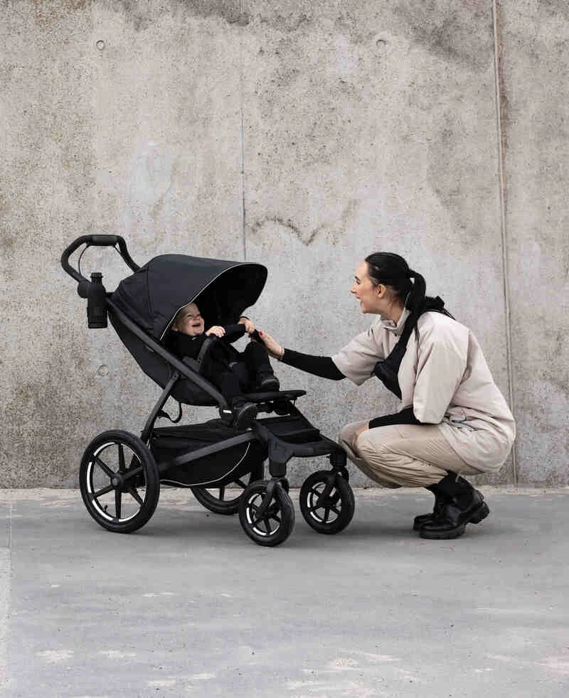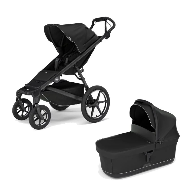 Le Pack Poussette Urban Glide 4 roues et sa nacelle de Thule est idéal poour promener votre enfant de la naissance à 4 ans.