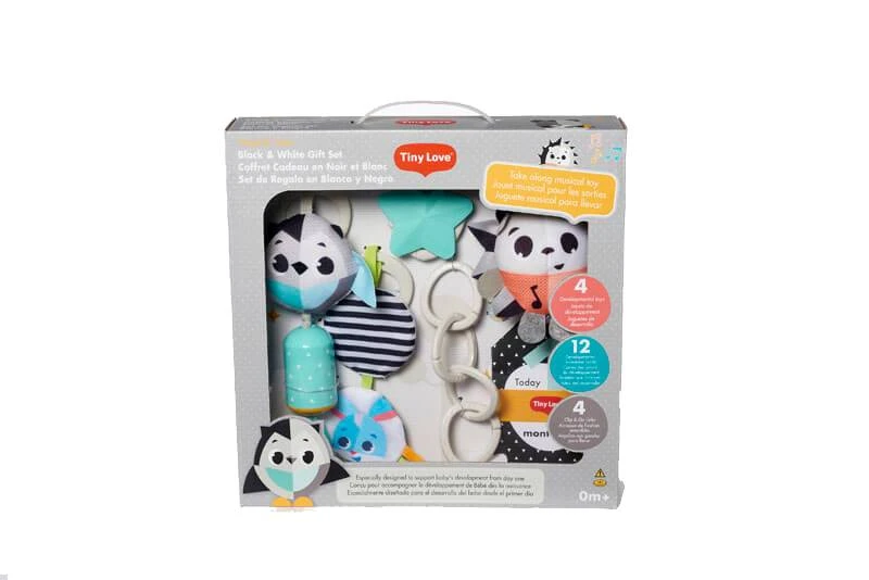 Ce coffret cadeau Black & White de Tiny Love est le cadeau de naissance parfait.
