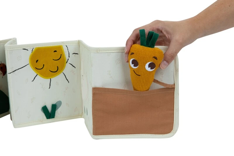 Le Livre Double Face – Garden of Adventures est un jouet éducatif conçu pour soutenir le développement des sens et des compétences motrices des tout-petits.