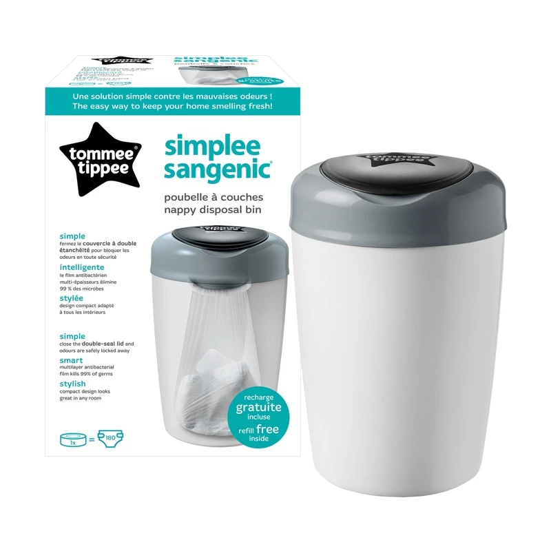 La poubelle à couches simplee de Sangenic Tommee Tippee est très pratique pour garder la chambre propre de bébé.
