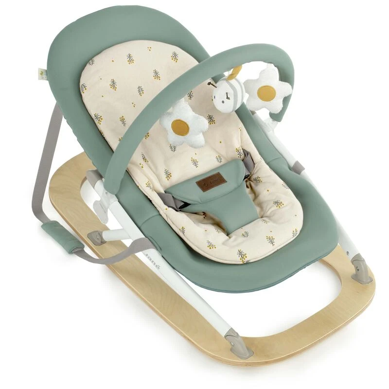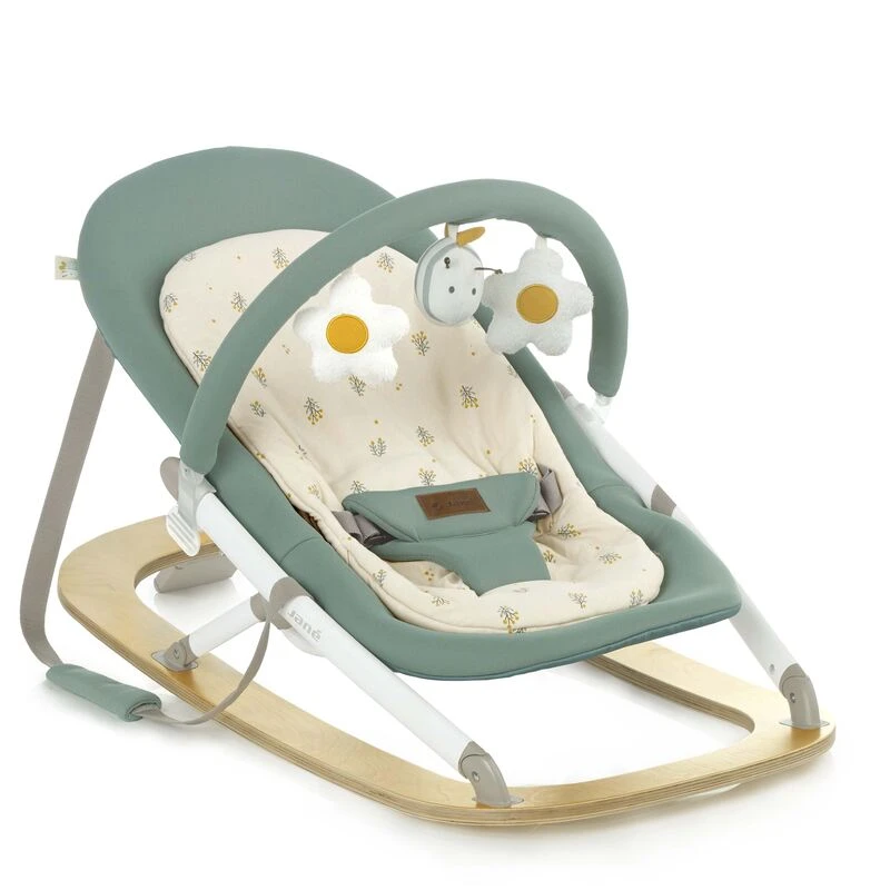 Le Transat Kalm avec arche d’éveil de Jané est un transat extrêmement stable grâce à sa base en bouleau de qualité.