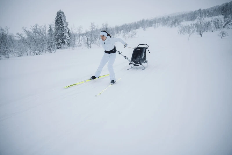 Le harnais rembourré amélioré assure un maximum de confort pour le conducteur, permettant de profiter pleinement de chaque sortie. La fixation de skis améliorée permet de faire glisser votre remorque sur les skis, offrant ainsi une maniabilité optimale même dans la neige.